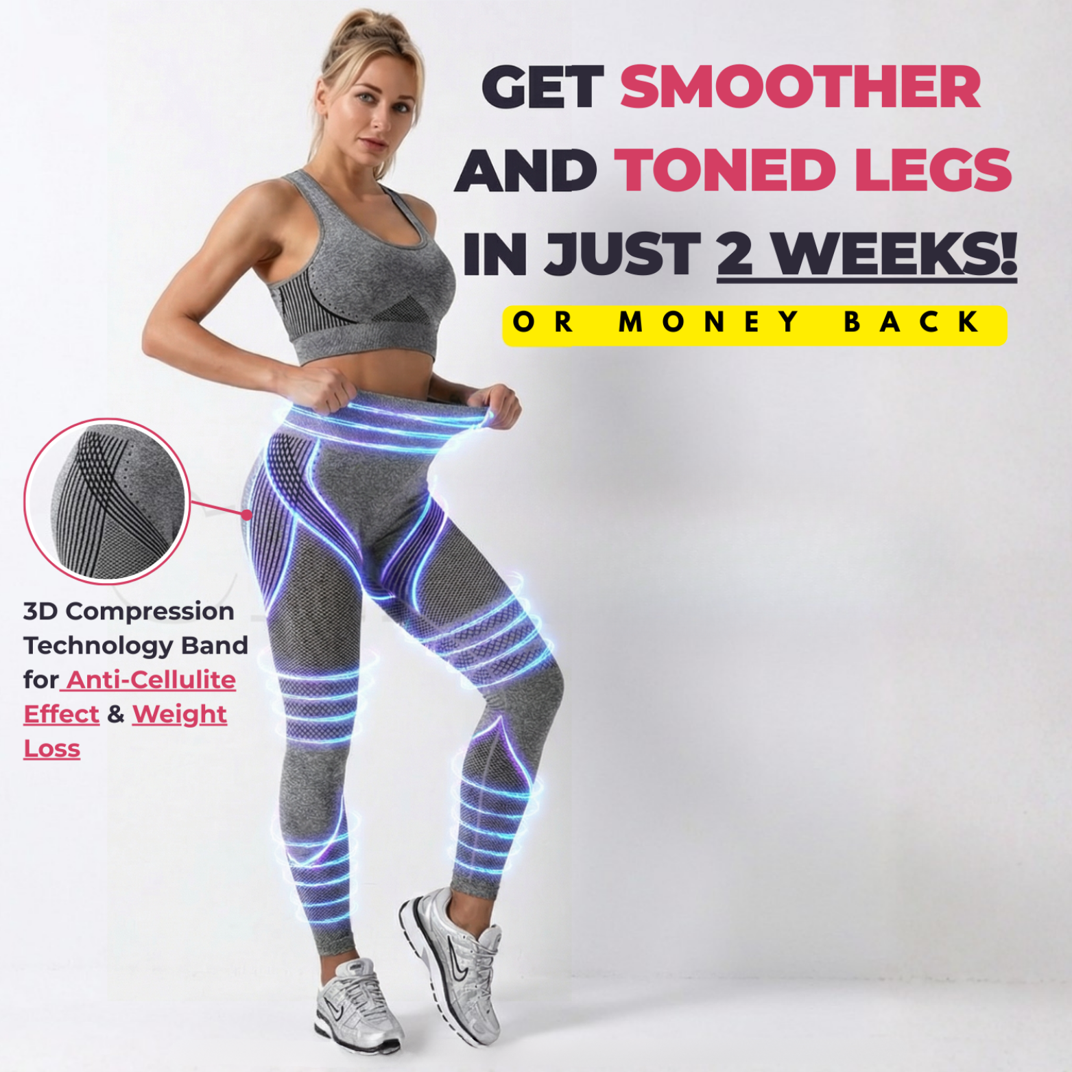 The 3D compression in our leggings adds resistance to your muscles, making your legs work 2–3 times harder than usual. The harder your muscles work, the more calories they burn to produce energy, helping you lose weight up to 3× faster.